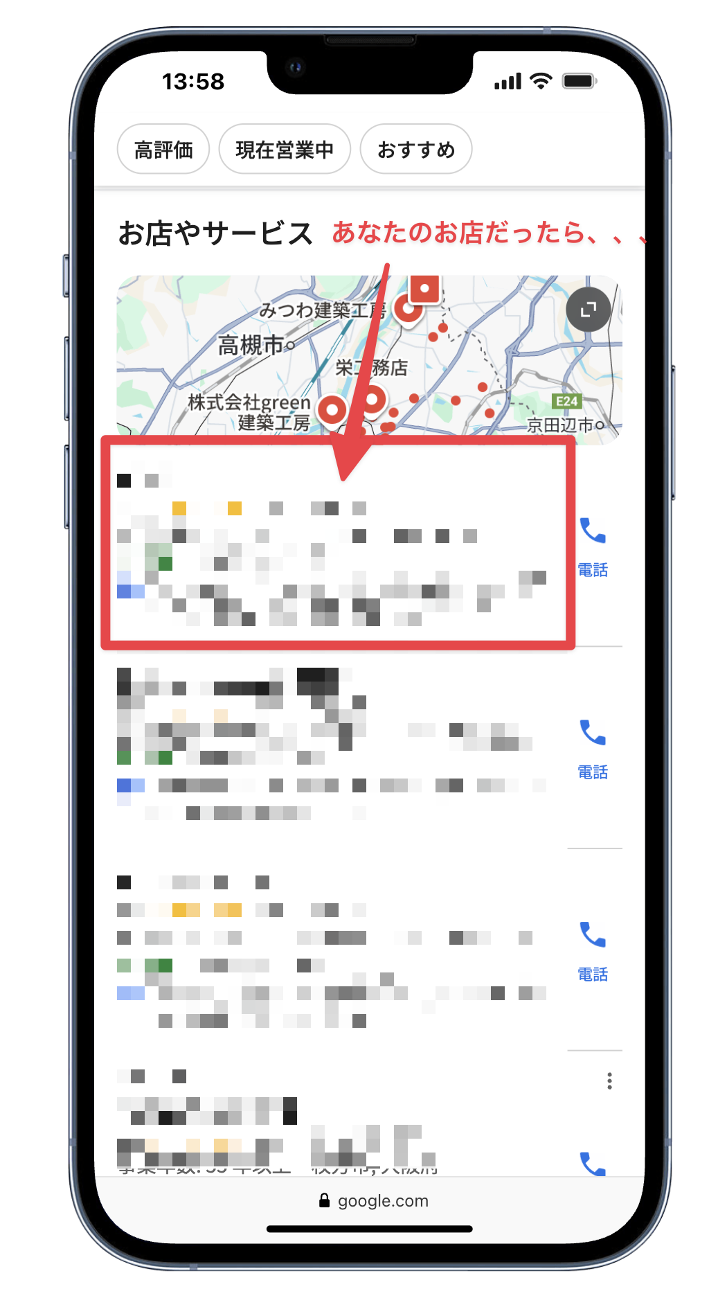 そして検索結果の一番上にあなたのお店が表示されていたとしたら、どうでしょうか?